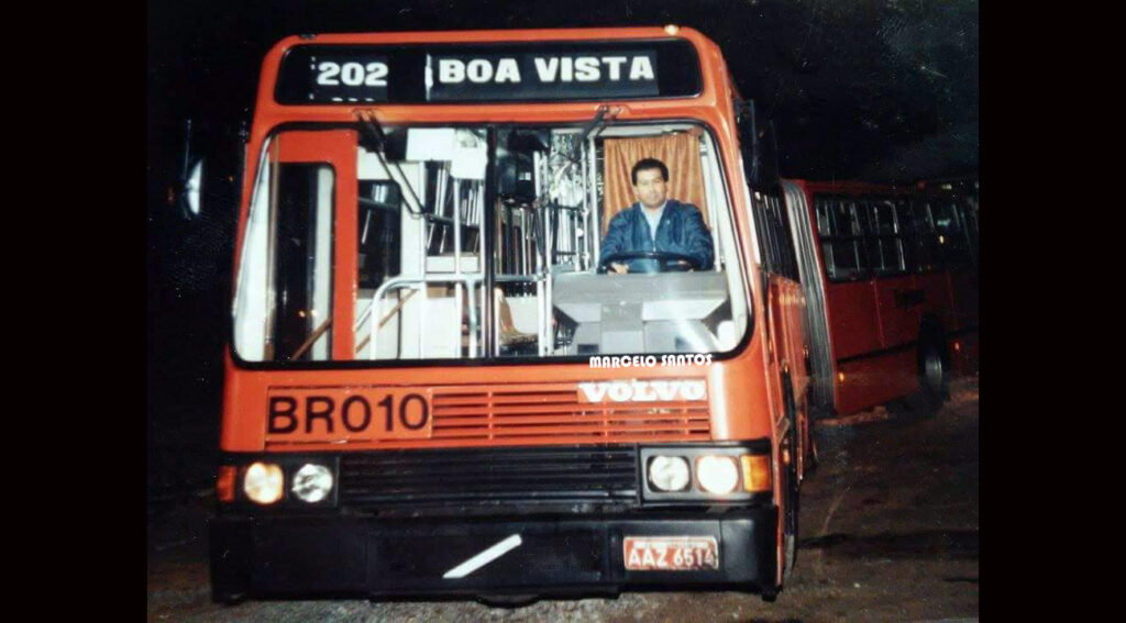 Prefixo 8607, possivelmente em 1990 ou 1991 e, depois, como BR010, em ambas as imagens atendendo a linha 202-BOA VISTA.