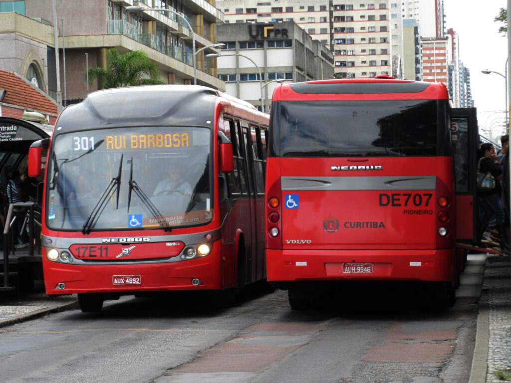 Encontro dos biarticulados na maior estação de integração de linhas de Expresso em Curitiba a Praça Eufrásio Correia, no Centro.