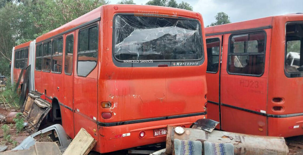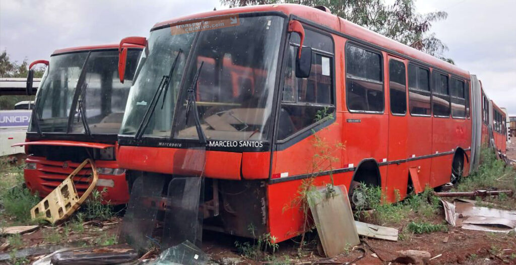 Registros durante a operação de um dos guerreiros que circularam pelas canaletas de Curitiba, atendendo o transporte coletivo no sistema biarticulado, e seu destino final, ferro velho em Engenheiro Beltrão, Paraná.
