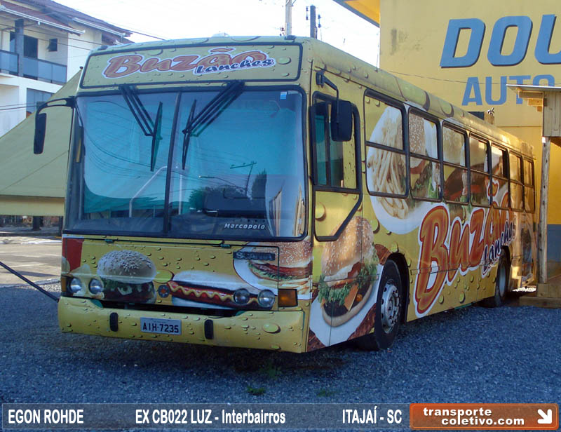 O carro de prefixo CB022 da extinta empresa N. Senhora da LUZ, ano 1998, placa AIH-7235, com carroceria Marcopolo Torino GV no chassi Scania L94 IB, após operação no sistema foi vendido e utilizado como “Buzão Lanches”, conforme registro de @egonrohdeb em em Itajaí (SC).