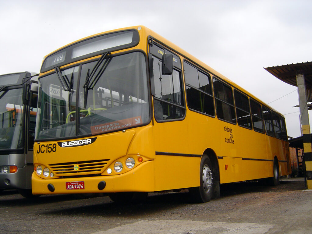 Mais um Convencional / Troncal da extinta Viação ÁGUA VERDE com destino definido, o Busscar Urbanuss sobre Mercedes-Benz O-500M que teve prefixo JC158 na empresa, placa AOA-7074 ano 2006, foi depois o carro 44333 da Empresa de Transportes Coletivos Novo Horizonte, capital paulista. O veículo recebeu elevador para cadeirantes e itinerário eletrônico.