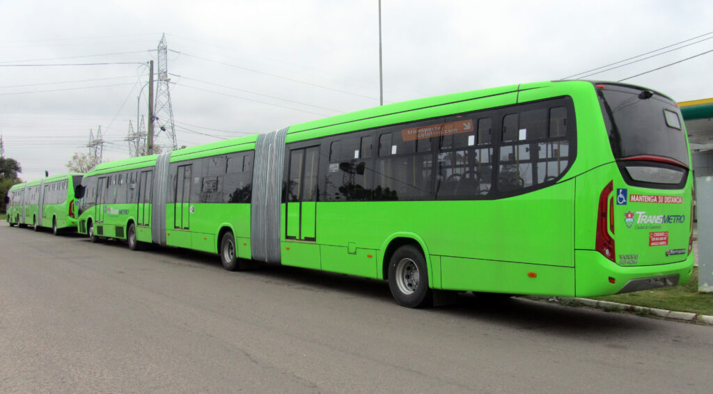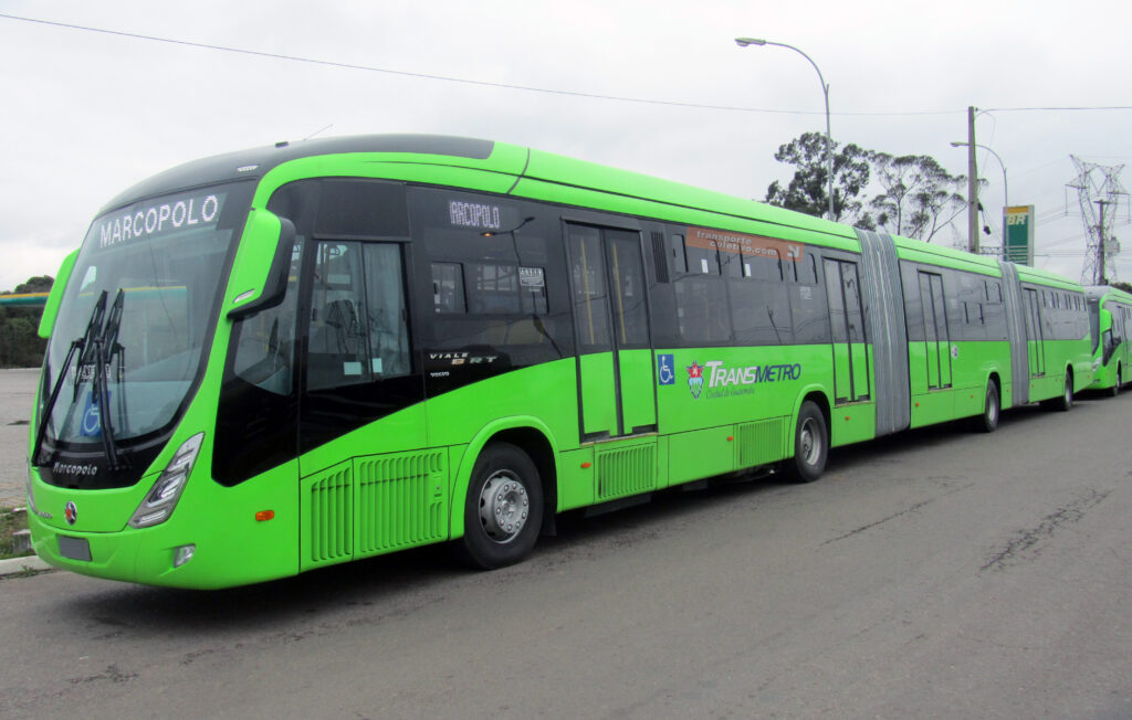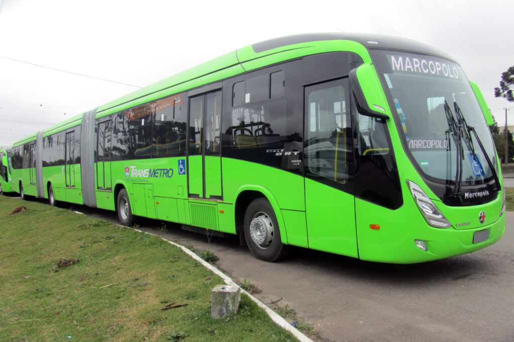 O biarticulado de chassi Volvo B340M sob a carroceria Marcopolo Viale BRT, produzida em Caxias do Sul (RS), passava, em agosto de 2017, na região de Curitiba rumo ao Porto de Paranaguá para de lá partir para a Cidade da Guatemala, na Guatemala, América Central, integrando o sistema TransMetro.