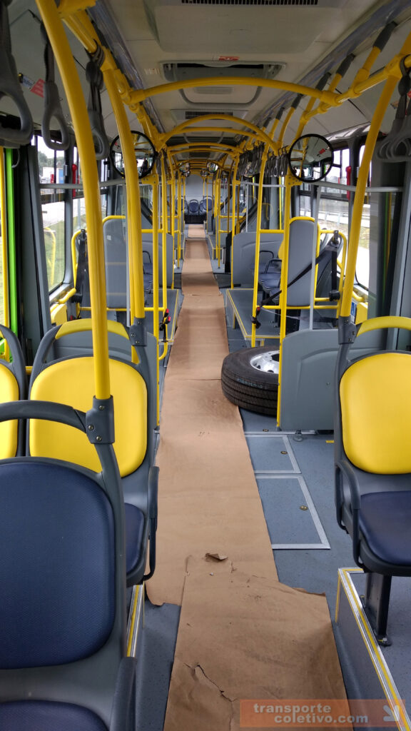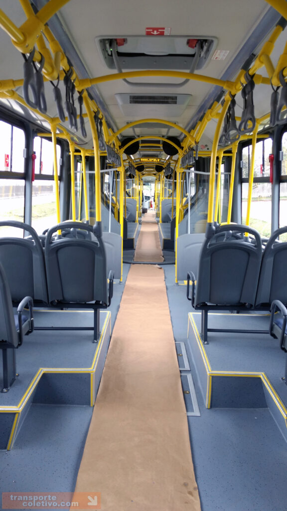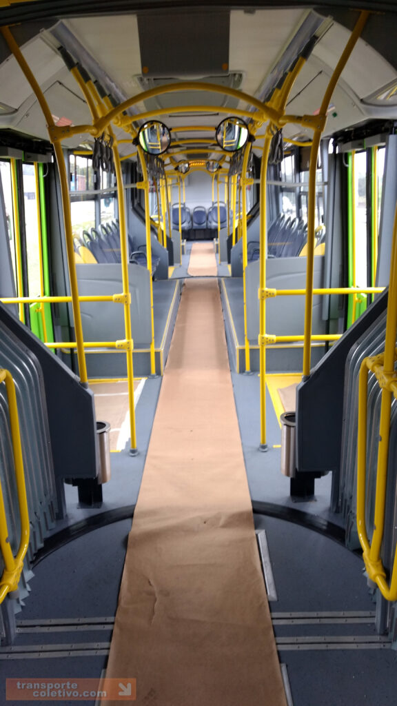 Um dos diferenciais do leiaute interno do veículo está na posição mista dos bancos, conforme as imagens, e claro, a ausência de rampas basculantes, característica do sistema curitibano inaugurado em 1991 no Linha Direta (Ligeirinho) e em 1992 no biarticulado.