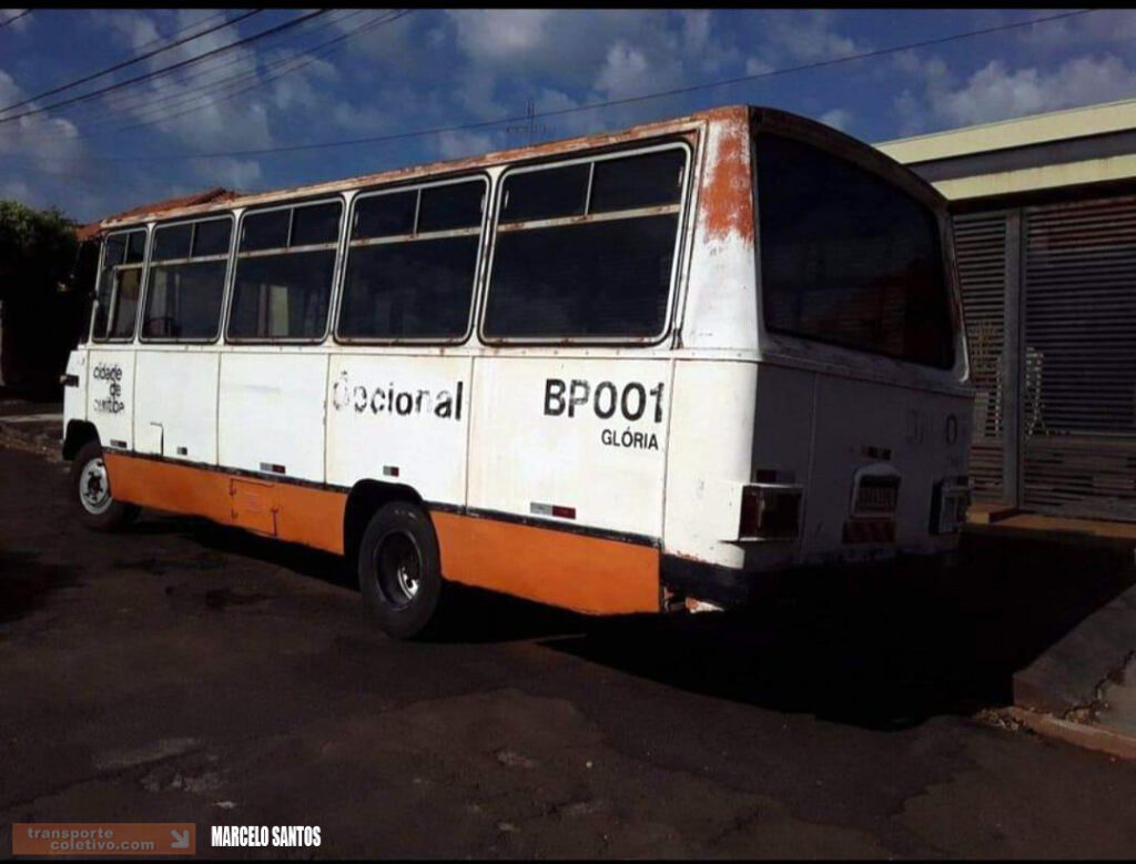 O carro em questão, micro-ônibus que chegou a receber prefixo alfanumérico BP001, da Transporte Coletivo GLÓRIA, acervo de Marcelo Santos, registrado em Ourinhos – São Paulo.