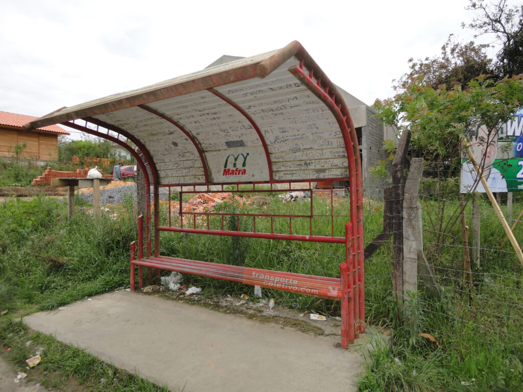 Já o ponto de espera para passageiros, “autografado”, de outubro de 2010.