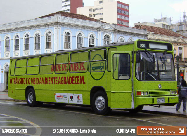 Dos clássicos Ligeirinhos Mercedes-Benz plataforma O-371UP, o carro de prefixo GL031 da Viação Cidade SORRISO que foi todo plotado para atuar em campanha para a conscientização da população para que utilizassem o transporte coletivo ao automóvel, em 2009.