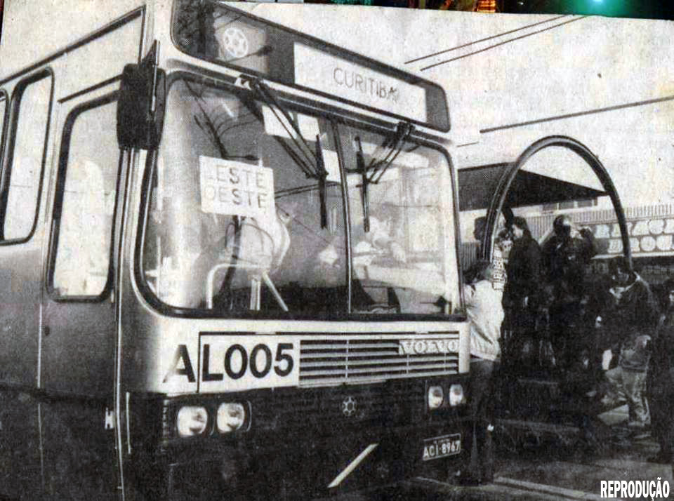 Uma reprodução de publicação de jornal traz imagem do carro AL005 da Viação MARECHAL atendendo a linha que é hoje a 304-PINHAIS/CAMPO COMRPIDO.