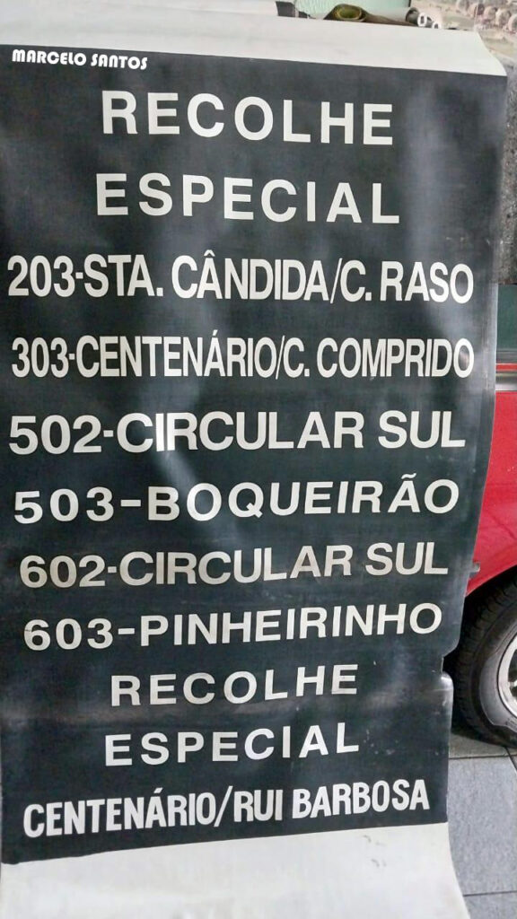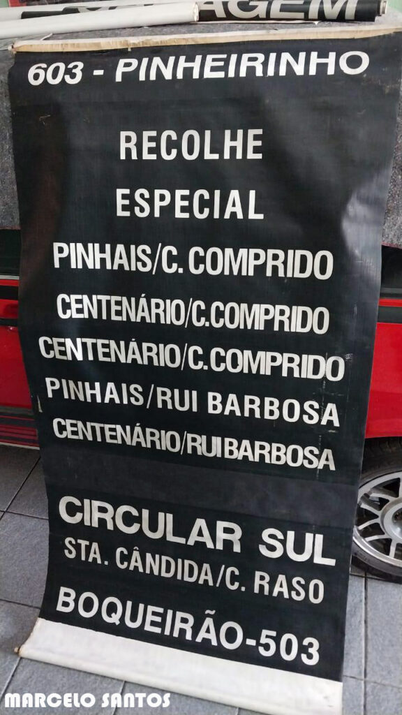 Até a metade da década de 2000, os ônibus de Curitiba e região metropolitana utilizavam letreiro (local na frente do ônibus onde tem o nome da linha) de lona, quando o motorista girava a manivela até encontrar a desejada.
