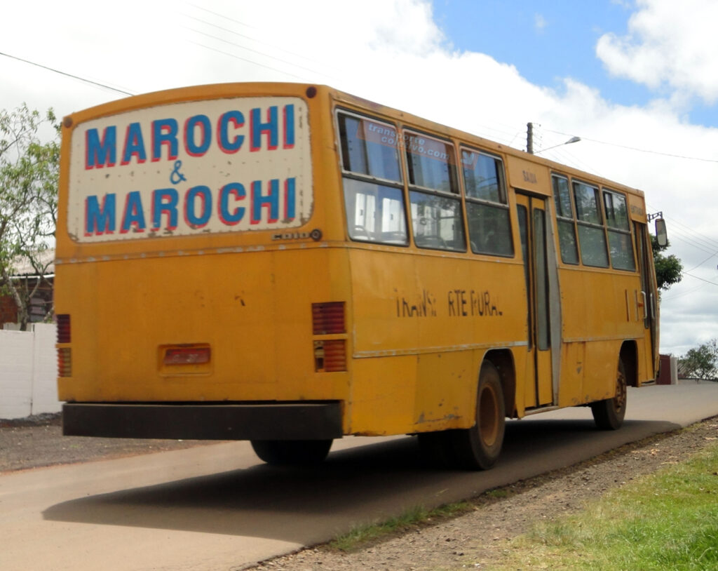 Em Guarapuava, março de 2011, um coletivo que atendeu o transporte de Curitiba estava, após 26 anos de fabricação, com a configuração ainda do serviço Convencional (amarela).