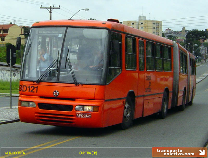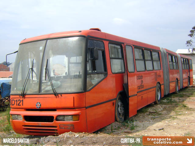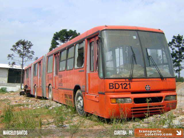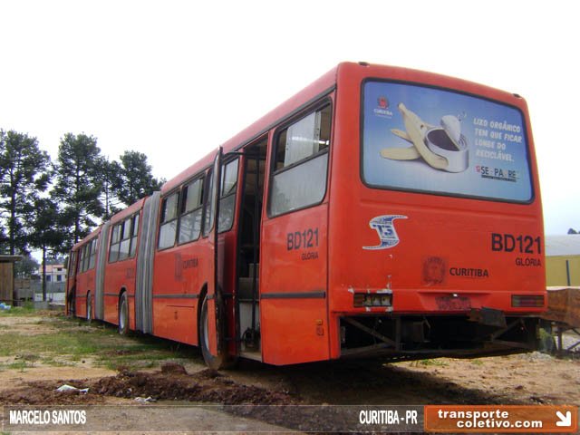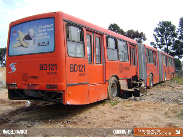 Registro de um dos Expressos biarticulados leiloados em 2007, após operação no sistema de Curitiba, ônibus de prefixo BD121 (AFK-3169) da GLÓRIA, carroceria Marcopolo modelo Torino GV sobre o chassi Volvo B58E ano 1995, ainda na capital paranaense.