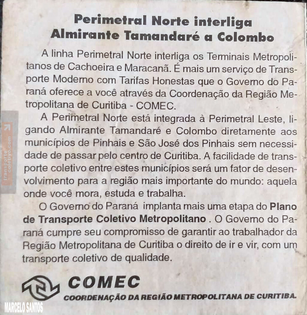 Da década de 1990, semelhantes às linhas de Interbairros em Curitiba, as ligações CACHOEIRA/MARACANÃ e COLOMBO/SÃO JOSÉ, subdividida em MARACANÃ/AUTÓDROMO e AUTÓDROMO/AFONSO PENA, atuais linhas I90-T.CACHOEIRA/T.MARACANÃ e I20-T.MARACANÃ/AFONSO PENA, classificadas como Intercidades.