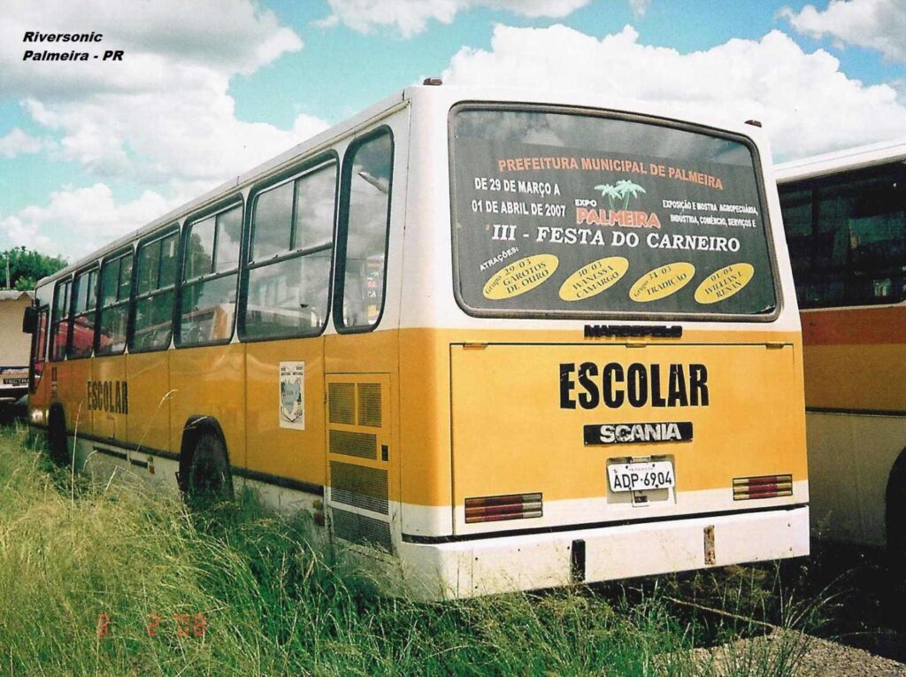 Após sair do sistema de transporte metropolitano, foi adquirido pela Prefeitura de Palmeira, Campos Gerais, para atividades no transporte escolar, registro de @alexandremsanches