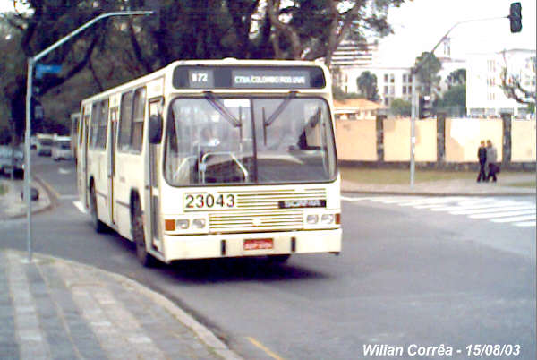 Da época do Novo Metropolitano, 1993, ônibus que finalizou operação Pela Viação COLOMBO com prefixo 23043, atendendo a linha B72-CTBA/COLOMBO (ROD.UVA).