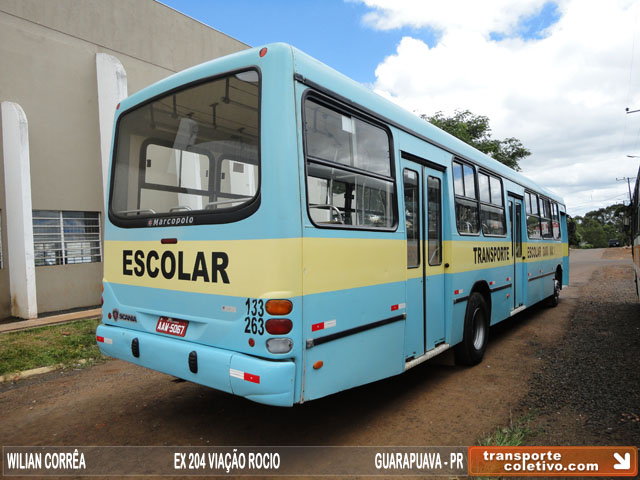 Um dos três veículos na configuração de chassi Scania F94 sob a carroceria Marcopolo Torino GV2 (1999) que operaram pela Viação Rocio, de Paranaguá, após saída do serviço municipal entrou em atividade escolar na região de Guarapuava. Com placa AAW-5067, ano 2001, permaneceu com a pintura azul da empresa do litoral paranaense que utilizava o prefixo 204.