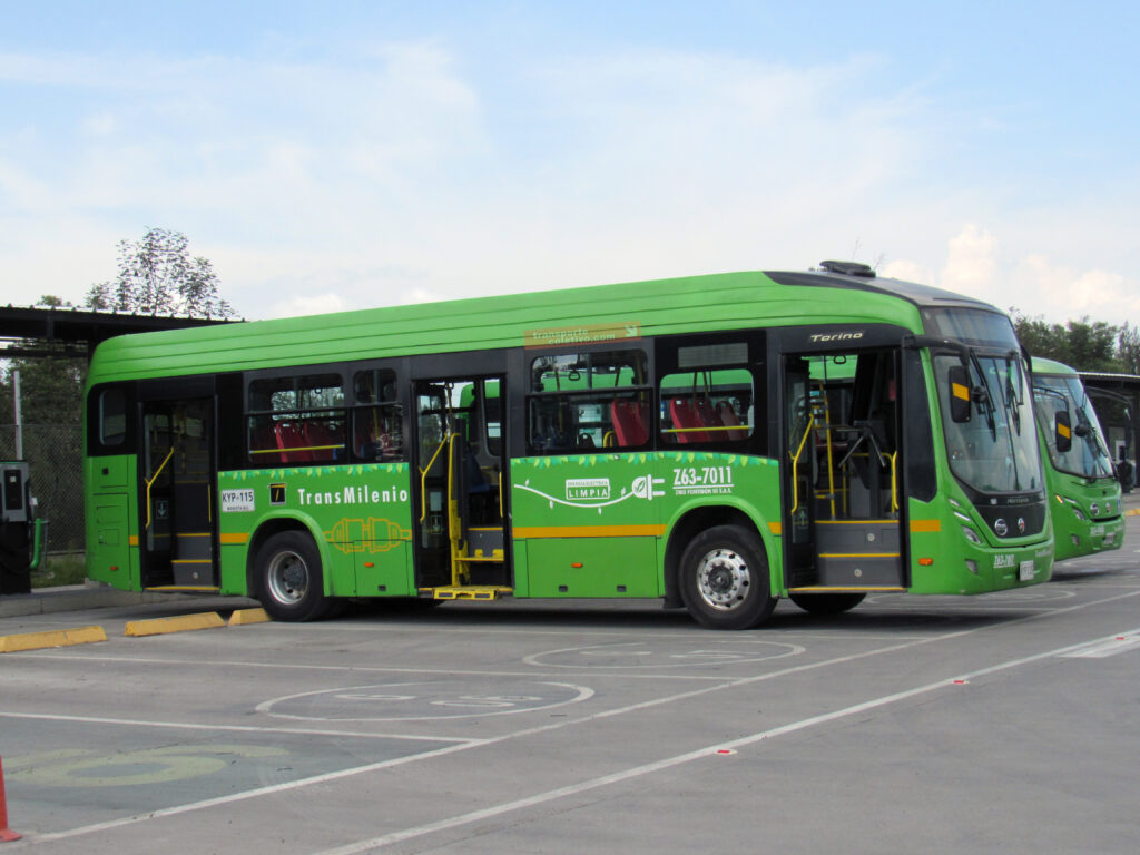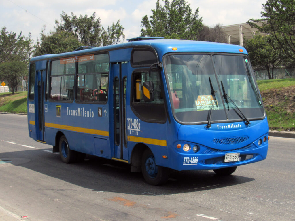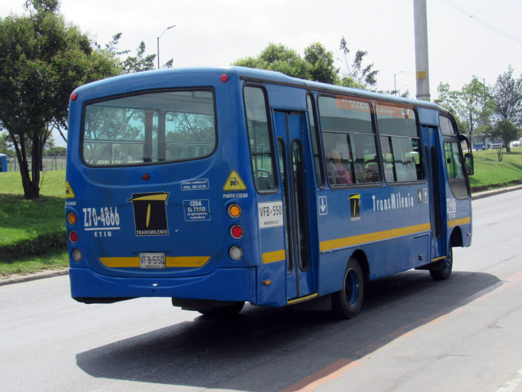 Um micro-ônibus do transporte coletivo de Bogotá, Colômbia, modelo que se parece com o Pia da Comil, aqui no Brasil.