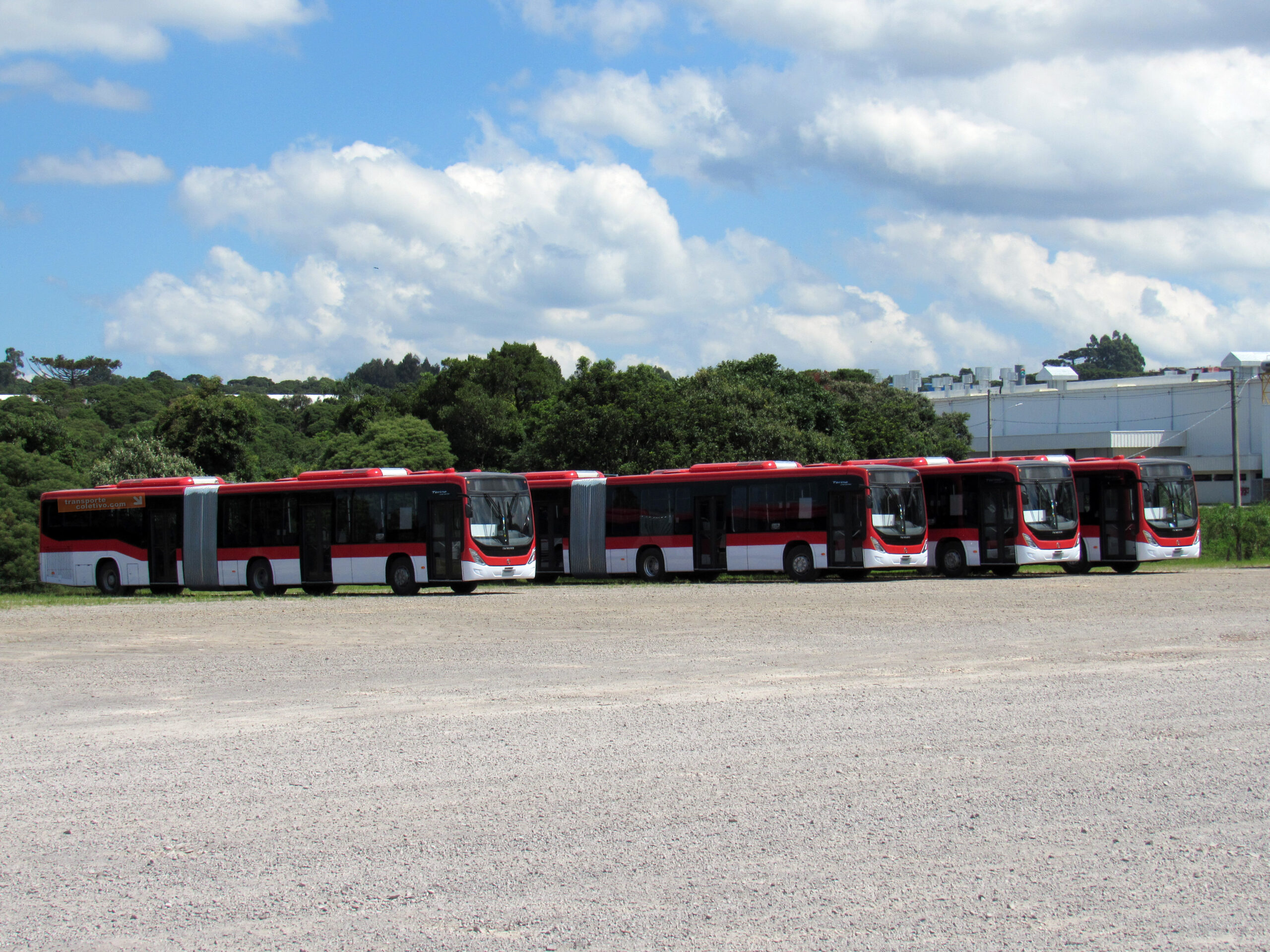 Era fevereiro de 2019 quando quatro articulados com piso baixo, recém-fabricados, aguardavam liberação para exportação.