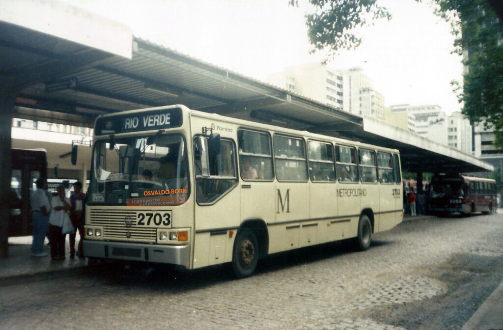Como 2703 parado no Terminal Guadalupe, dando embarque aos passageiros da linha RIO VERDE, que posteriormente, com a integração com Curitiba, virou Alimentadora no Terminal Boa Vista, na capital.