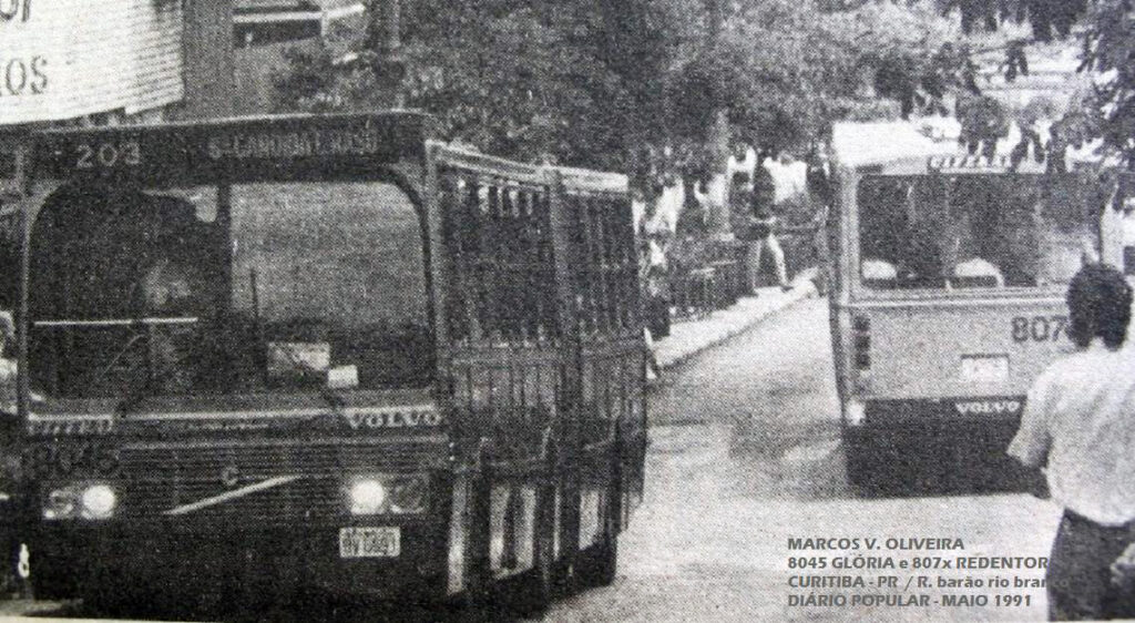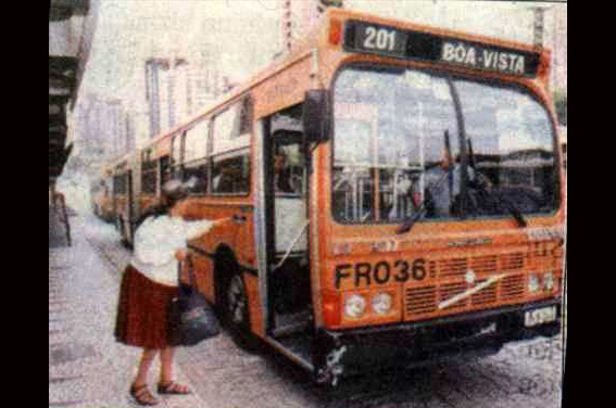 Noutra imagem ele aparece na linha 202-BOA VISTA, mas com código 201 que era do Expresso CABRAL/PORTÃO. Com a entrada do biarticulado 203-STA.CÂNDIDA/CAPÃO RASO em 1995, as linhas 201 e 202 deixaram de existir.