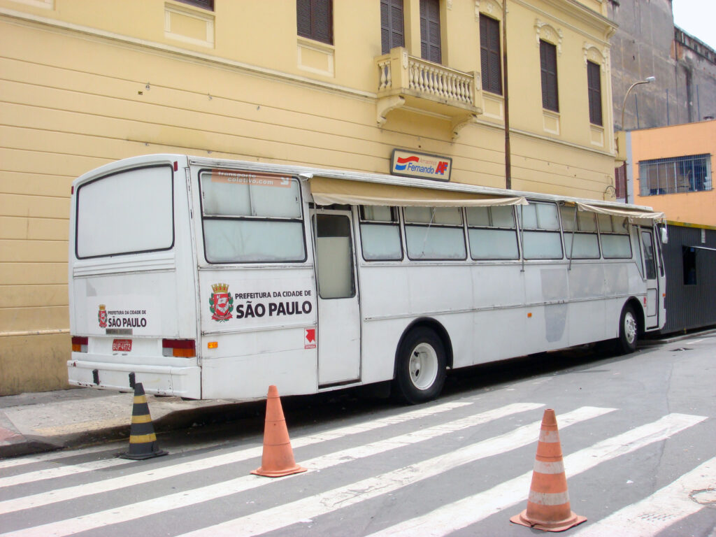 O lindo Caio Vitória montado sobre o chassi Scania F113 HL de propriedade da Prefeitura Municipal de São Paulo, junto à Rua 25 de Março, início de 2009.