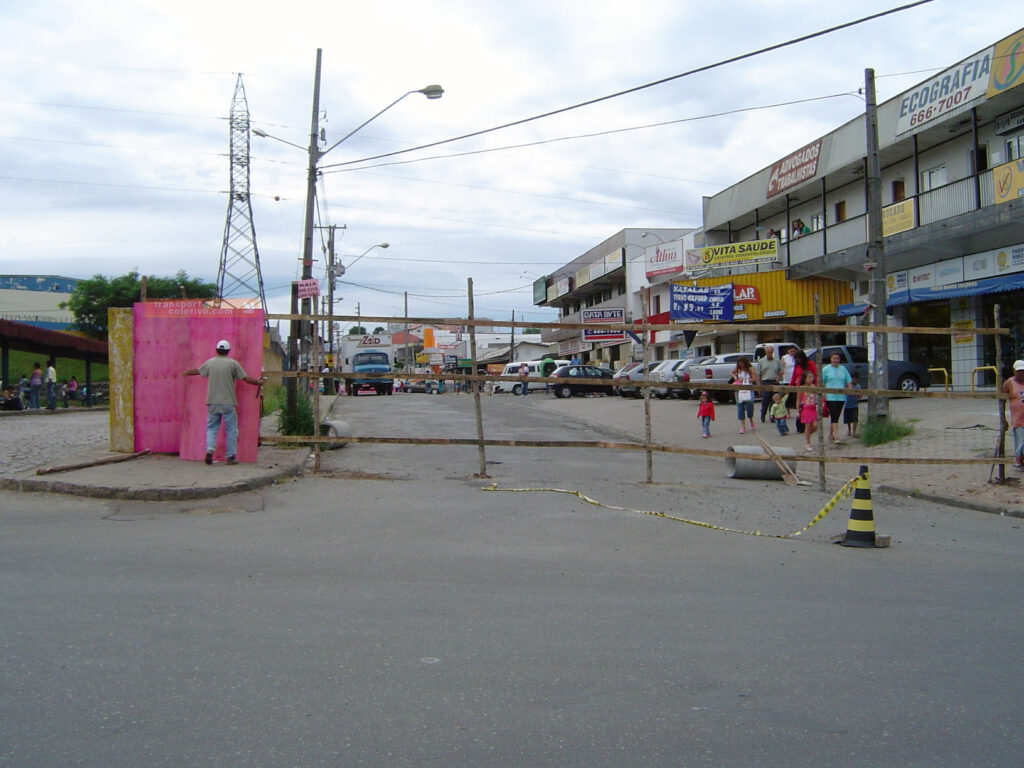 Momento em que a rua lateral ao Terminal Maracanã, em Colombo, estava sendo fechada para que o terminal fosse ampliado.