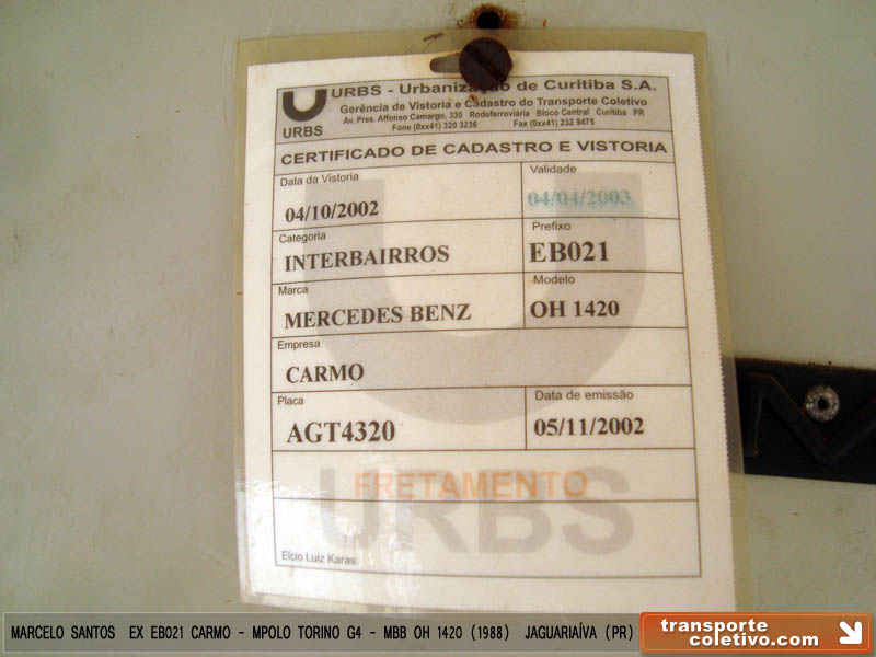 Sim, este foi o EB021, Interbairros da Auto Viação N. Sra. do CARMO, que foi o último do modelo Torino 1983 no chassi OH 1420 da Mercedes-Benz, ano 1988.