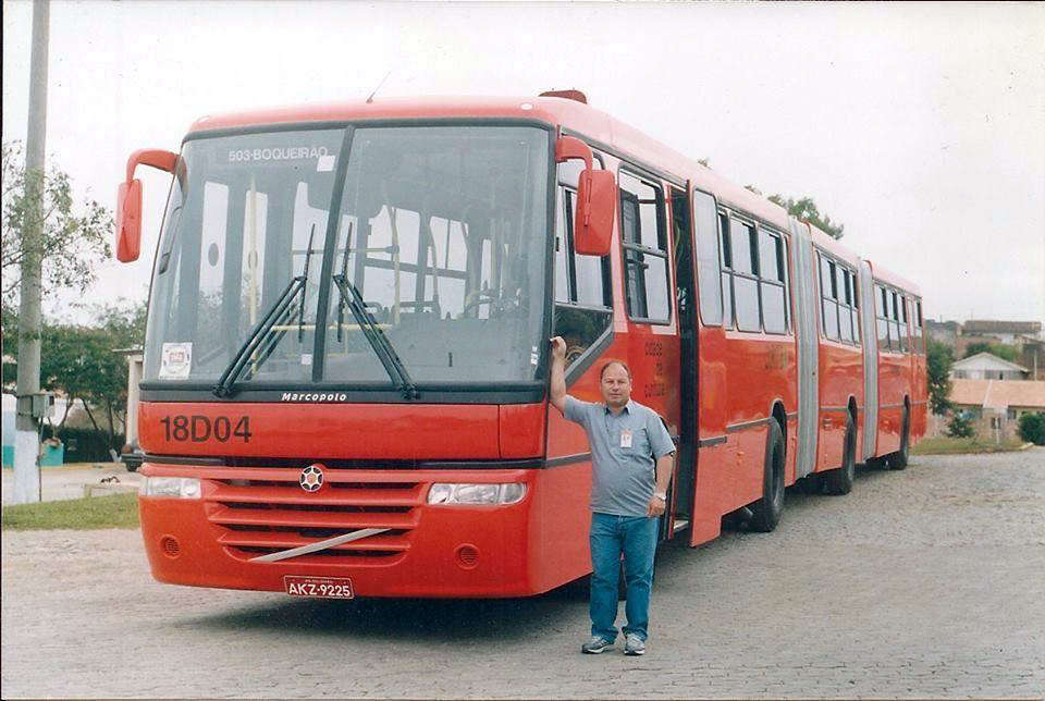 Nas imagens, o profissional @bonfimgood posando nos dois momentos dessa história do transporte coletivo de Curitiba e região metropolitana.